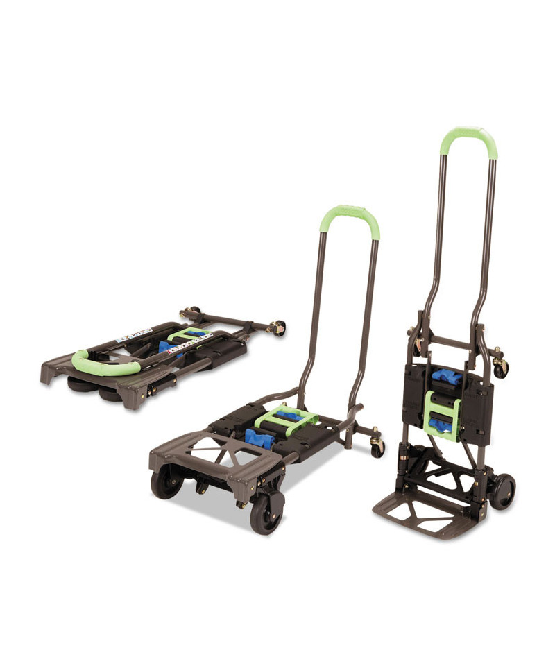 2-in-1 Multi-Position Hand Truck and Cart, 300 lbs, 16.63 x 12.75 x 49.25, Black/Blue/Green