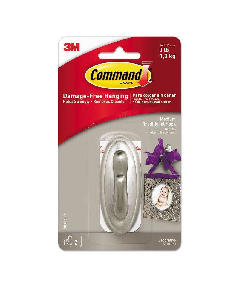 Command™ Damage-Free Hanging—holds strongly, removes cleanly. Dress up your walls with sleek and stylish hooks. From sophisticated to fun and playful, Command™ Decorative Hooks give you options for every room in your home. And forget about nails, screws and tacks. These hooks are easy to hang, support a surprising amount of weight and keep your surfaces looking beautiful. The included adhesive strips stick to many surfaces: tile, wood, metal, painted surfaces and more, but they also remove cleanly, leaving no holes, marks, sticky residue or damage behind. Remove and reuse your hooks again and again!