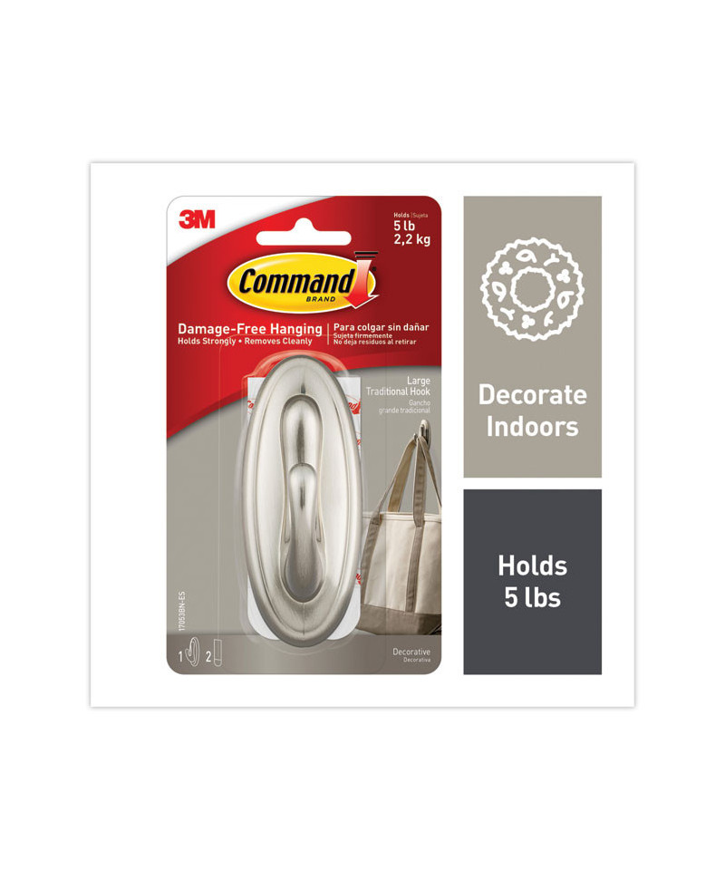 Command™ Damage-Free Hanging—holds strongly, removes cleanly. Dress up your walls with sleek and stylish hooks. From sophisticated to fun and playful, Command™ Decorative Hooks give you options for every room in your home. And forget about nails, screws and tacks. These hooks are easy to hang, support a surprising amount of weight and keep your surfaces looking beautiful. The included adhesive strips stick to many surfaces: tile, wood, metal, painted surfaces and more, but they also remove cleanly, leaving no holes, marks, sticky residue or damage behind. Remove and reuse your hooks again and again!
