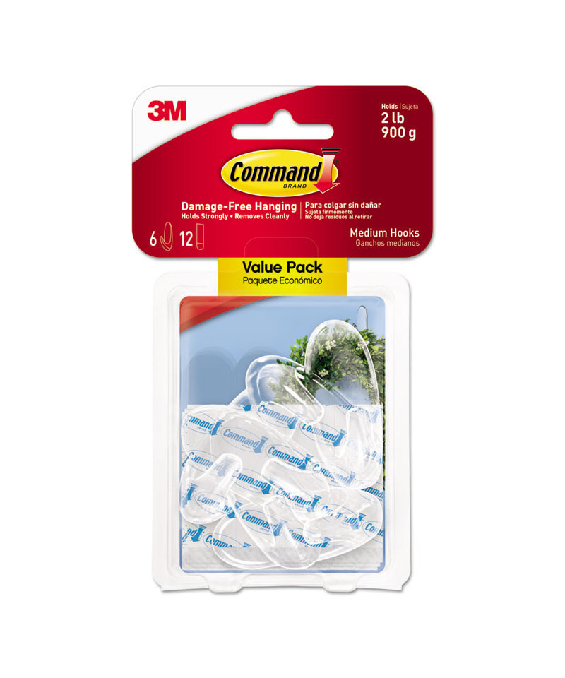 Command™ Damage-Free Hanging—holds strongly, removes cleanly. Forget about nails, screws and tacks, these clear hooks are easy to hang, support a surprising amount of weight and keep your surfaces looking beautiful. They're also nearly invisible, blending into their surroundings, so they don't distract from your decor. Included adhesive strips stick to many surfaces: tile, wood, metal, painted surfaces and more, but they also remove cleanly, leaving no holes, marks, sticky residue or damage behind. Remove and reuse them again and again!