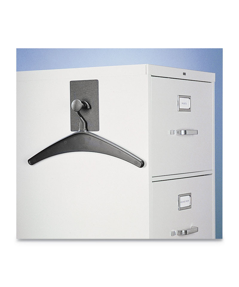 Durable hook backed by high-powered magnet secures to any magnetic surface, creating an efficient, space-conscious hanging system. Hang garments directly on durable steel post or use included Quartet® hanger. Compact, footless design ideal for tight spaces. Black powder-coat finish.