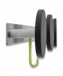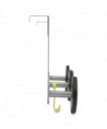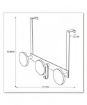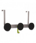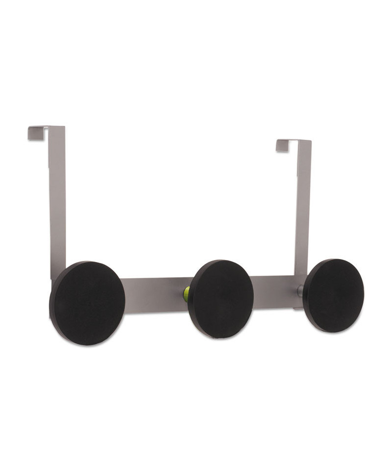 This wall coat peg features three rounded black plastic pegs, one hook for accessories, one metallic holder, and two hooks to fix over the door. Very easy to affix without any tools thanks to its hook especially designed for doors (1.5 inches). Can also be used on cubicle partition walls of 1.5 inches. Very sturdy coat pegs that hold up to 20 pounds per hook. Stylish design that blends in with any office environment. Kind to clothes thanks to the large rounded tips on the ABS plastic coat pegs. Silver powder coated steel and ABS plastic.