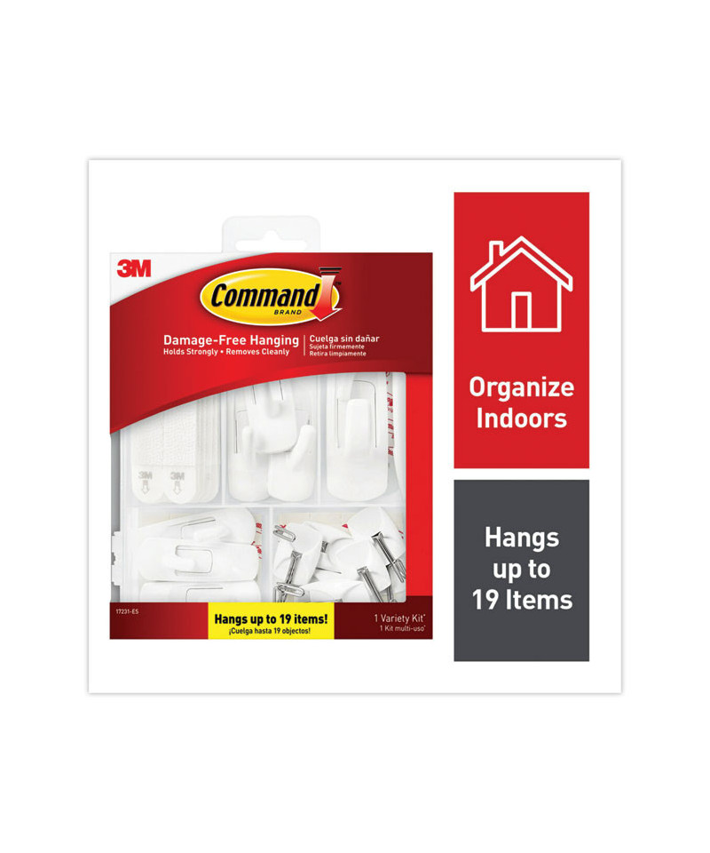An assortment of Command Products contained in a reclosable kit for easy storage and organization. Always have the products you need to quickly and easily hang your décor! Best of all, when you are ready to take down or redecorate, they come off cleanly - no nail holes or sticky residue.