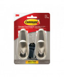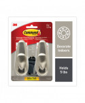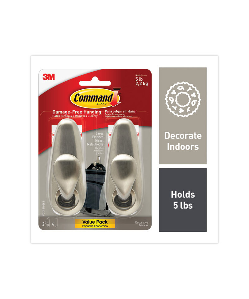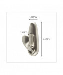 Adhesive Mount Metal Hook, Large, Brushed Nickel Finish, 5 lb Capacity, 2 Hooks and 4 Strips/Pack