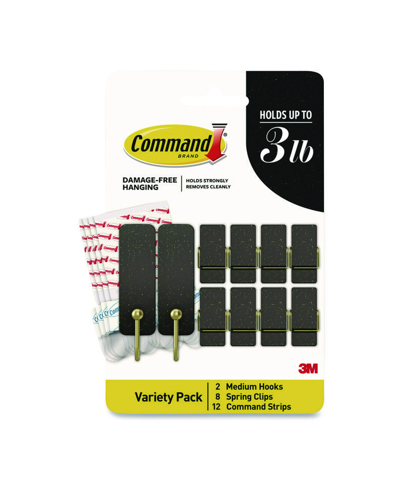 Limited Edition Hooks and Clips, Soot, 3 lb Capacity, 2 Hooks, 8 Clips and 12 Strips/Pack