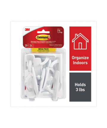 Add to cart Medium Utility Hooks, Plastic, White, Supports 3 lb, 20/Pack $32.10 Holds strongly, removes cleanly. Forget about nails, screws and tacks and say goodbye to holes, marks and sticky residue on your walls and doors....