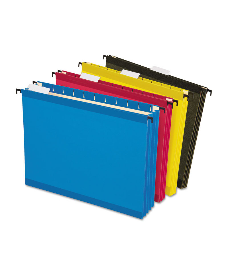 Revolutionary SureHook® features built-in tension springs. Stronger, sturdier rods and hooks bend less, and the folders slide with ease. Full-height gussets will not catch on drawer rails. 3 1/2" expansion. Polylaminate reinforced top and bottom edges provide superior durability.
