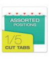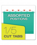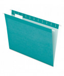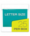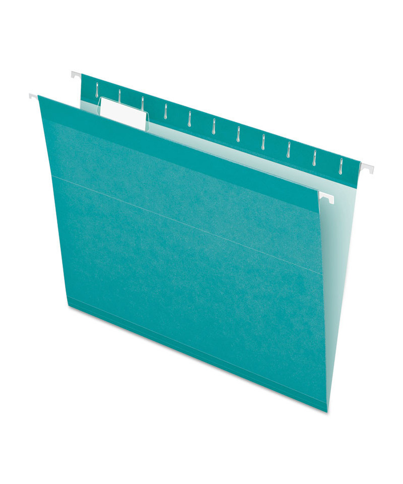 Colored Reinforced Hanging Folders, Letter Size, 1/5-Cut Tabs, Aqua, 25/Box