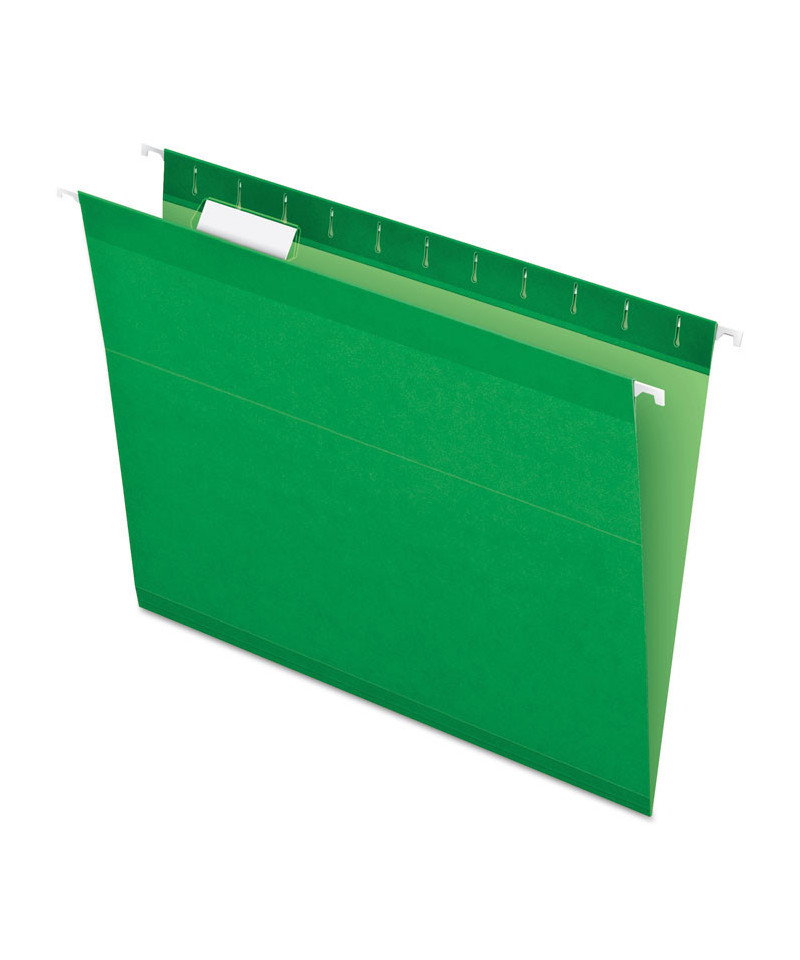 Colored Reinforced Hanging Folders, Letter Size, 1/5-Cut Tabs, Bright Green, 25/Box