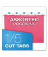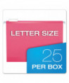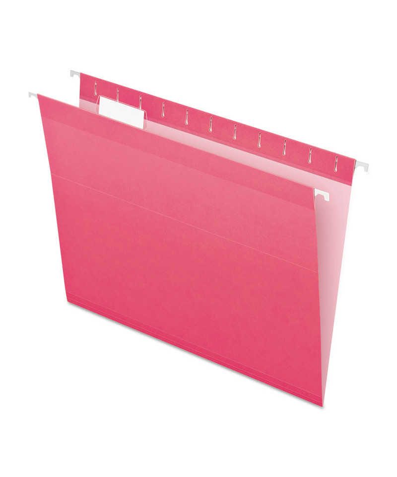 Colored Reinforced Hanging Folders, Letter Size, 1/5-Cut Tabs, Pink, 25/Box
