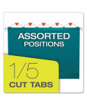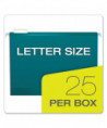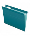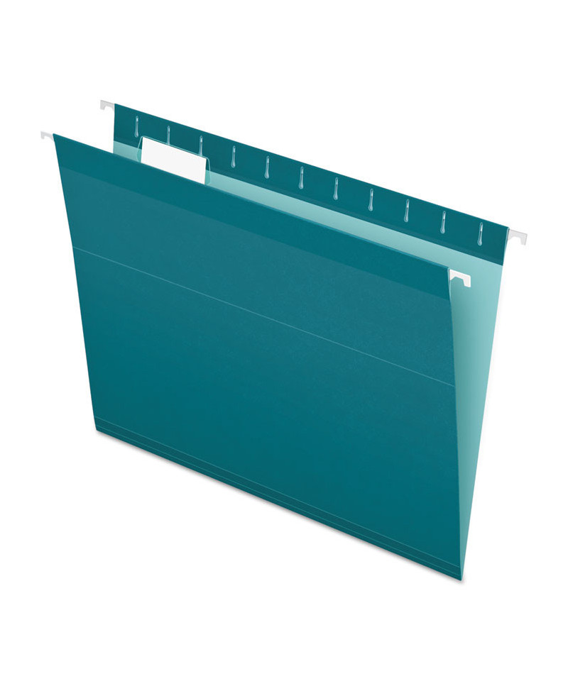 Colored Reinforced Hanging Folders, Letter Size, 1/5-Cut Tabs, Teal, 25/Box