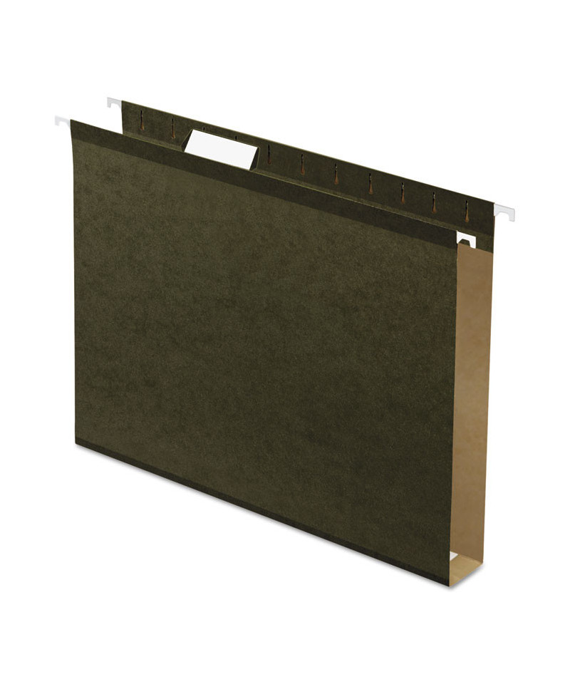 Pendaflex Extra Capacity Reinforced Hanging Folders expand to fit your largest, bulkiest files. A pressboard insert increases capacity. Polylaminate strips across the top edge and bottom fold resist rips and tears. Includes a letter-sized, printer-ready label sheet and tabs.