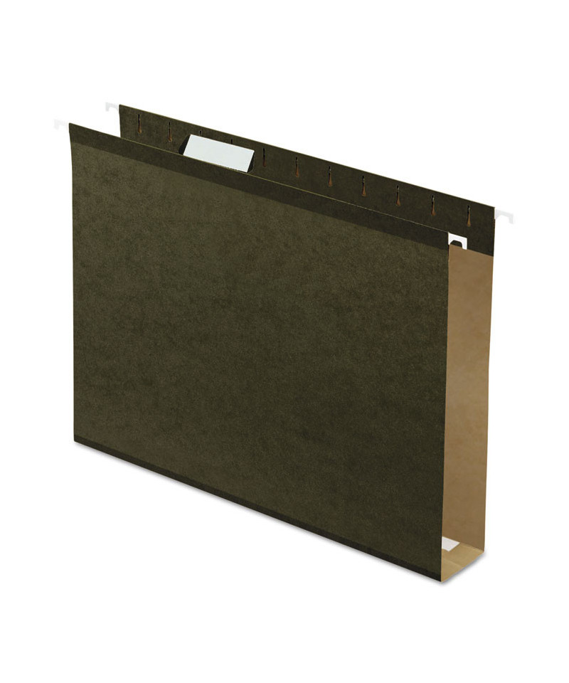 Pendaflex Extra Capacity Reinforced Hanging Folders expand to fit your largest, bulkiest files. A pressboard insert increases capacity. Polylaminate strips across the top edge and bottom fold resist rips and tears. Includes a letter-sized, printer-ready label sheet and tabs.