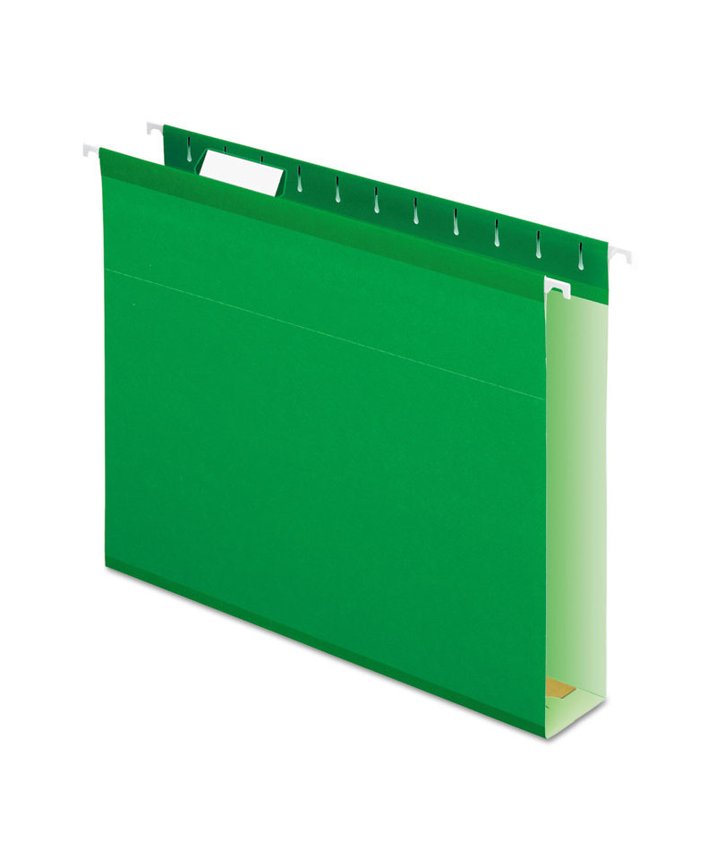 Pendaflex Extra Capacity Reinforced Hanging Folders expand to fit your largest, bulkiest files. A pressboard insert increases capacity. Polylaminate strips across the top edge and bottom fold resist rips and tears. Includes a letter-sized, printer-ready label sheet and tabs.