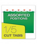 Extra Capacity Reinforced Hanging File Folders with Box Bottom, 2" Capacity, Letter Size, 1/5-Cut Tabs, Bright Green, 25/Box