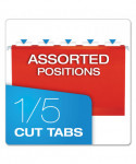 Colored Reinforced Hanging Folders, Legal Size, 1/5-Cut Tabs, Red, 25/Box