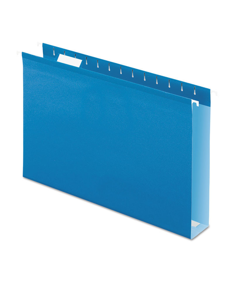 Pendaflex Extra Capacity Reinforced Hanging Folders expand to fit your largest, bulkiest files. A pressboard insert increases capacity. Polylaminate strips across the top edge and bottom fold resist rips and tears. Includes a letter-sized, printer-ready label sheet and tabs.