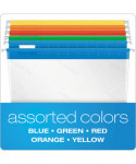 Great for organizing priority papers. Color bar on top helps you quickly find the color-coded folder you want and the see-through design offers instant visibility of contents. Super strong poly construction resists wear, tear and moisture. Color bars in blue, green, orange, red and yellow. Package includes tabs and blank inserts.
