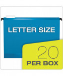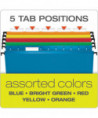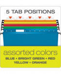 Extra-Capacity SureHook Hanging Folders, 2" Capacity, Letter Size, 1/5-Cut Tabs, Assorted Colors, 20/Box