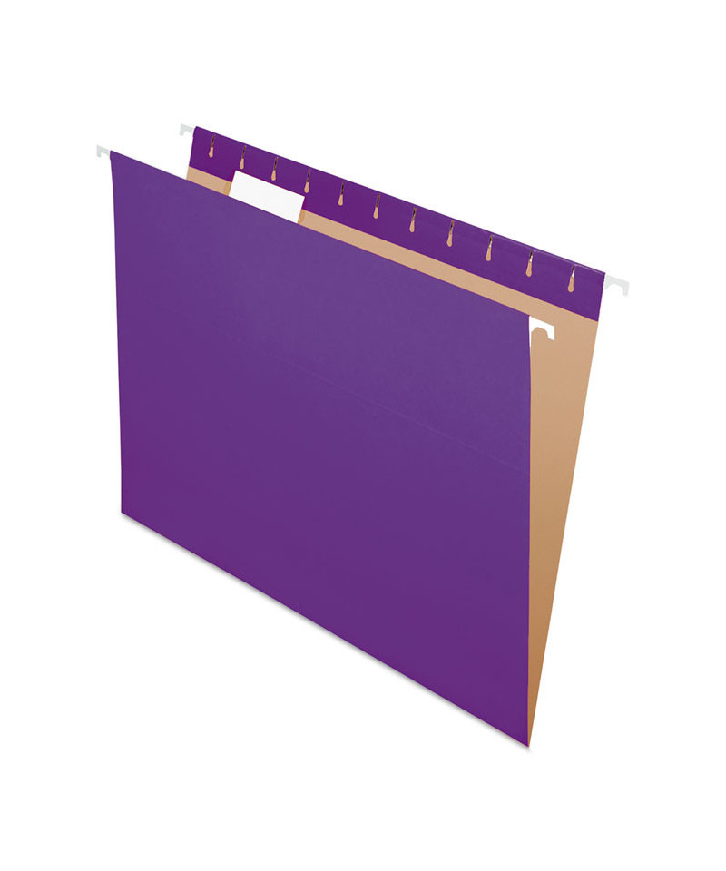 Vividly colored folders help organize files. Two-tone design, with a Kraft interior, helps prevent misfiling. Includes clear tabs and blank white inserts (unless otherwise noted).