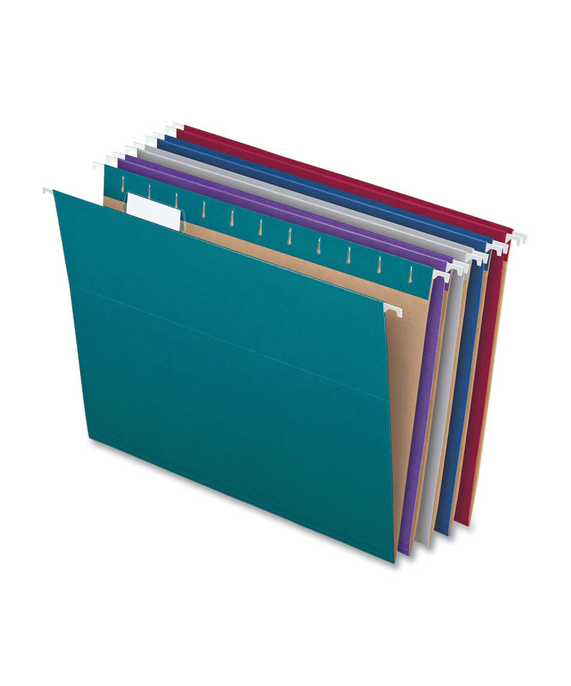 Add to cart Colored Hanging Folders, Letter Size, 1/5-Cut Tabs, Teal,... $62.56 Vividly colored folders help organize files. Two-tone design, with a Kraft interior, helps prevent misfiling. Includes clear tabs and blank white...
