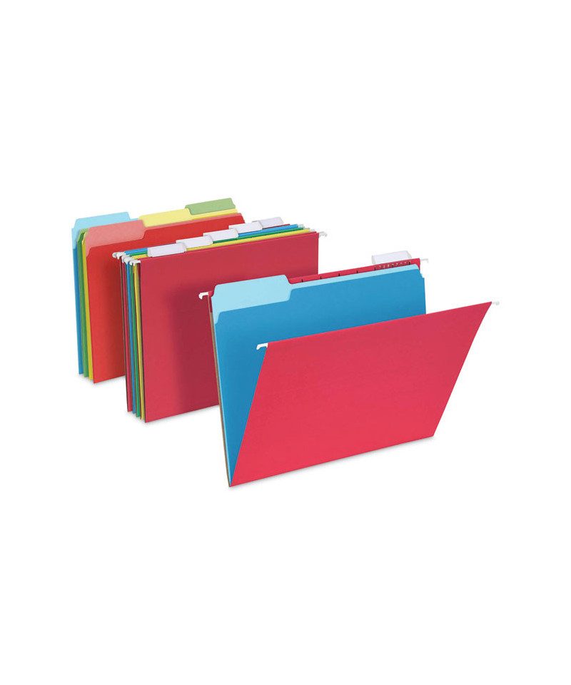 This Pendaflex® Hanging File Folder Combo Kit helps you get organized right away, so you can stay productive at the office or while working from home. Each kit contains 25 letter-sized hanging folders with 1/5 cut plastic tabs and white paper inserts and 50 letter-sized file folders. The hanging file folders have five positions for labeled tabs and the 1/3 cut interior file folders come in three tab positions for handwritten or sticker labels. Ideal for storing and organizing important home and office documents.