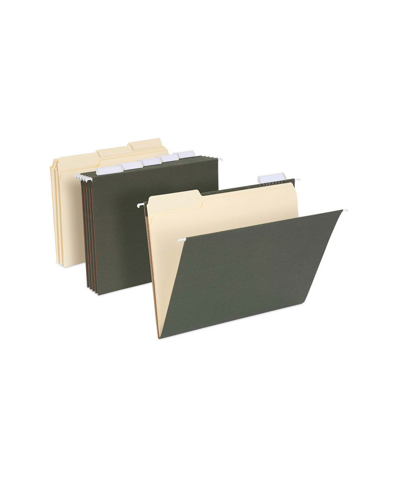 This Pendaflex® Hanging File Folder Combo Kit helps you get organized right away, so you can stay productive at the office or while working from home. Each kit contains 25 letter-sized hanging folders with 1/5 cut plastic tabs and white paper inserts and 50 letter-sized file folders. The hanging file folders have five positions for labeled tabs and the 1/3 cut interior file folders come in three tab positions for handwritten or sticker labels. Ideal for storing and organizing important home and office documents.
