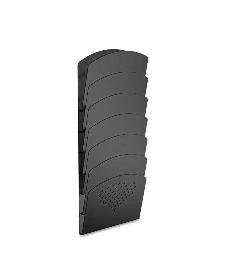 Sturdy steel wall rack features seven pockets to hold files to keep them organized and out of the way. Durable powder-coated construction is long-lasting. Mounts flush to any wall with included wall mounting hardware.
