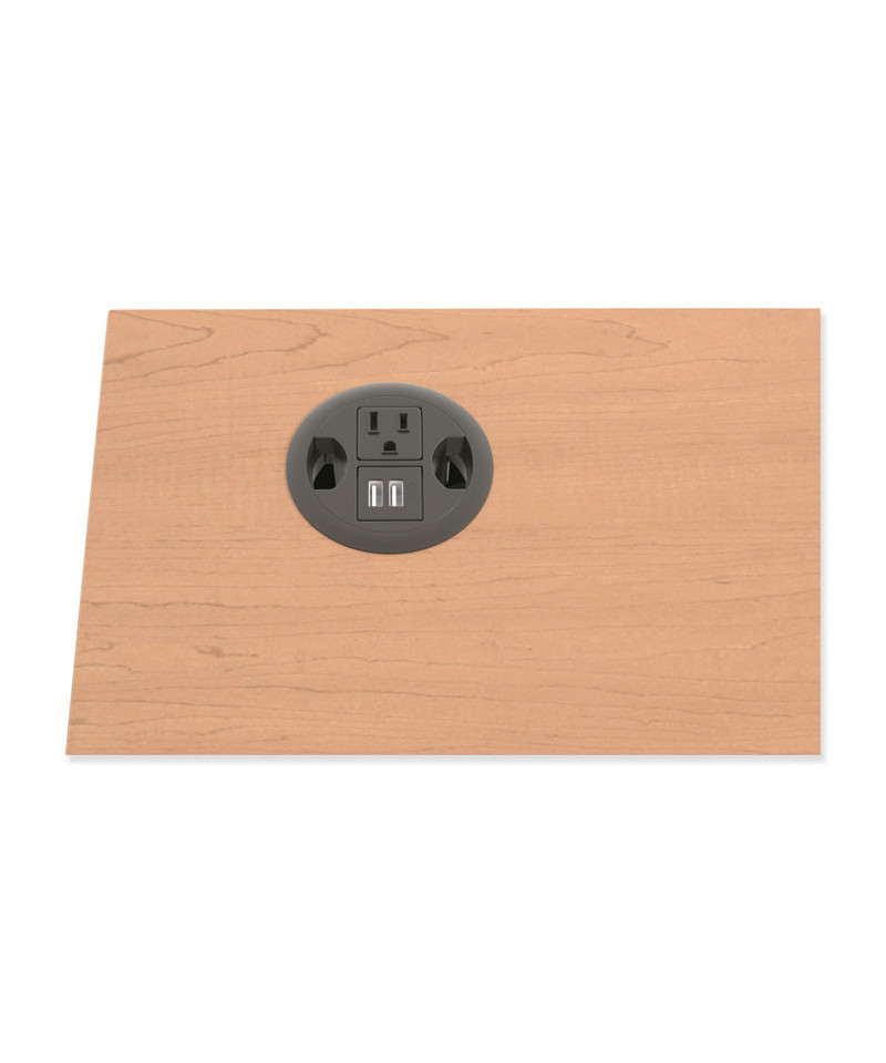 Features one grounded AC power outlet and two USB ports for desktop convenience. Black finish color complements any HON worksurface. Six-foot cord provides easy access to wall outlets. Fits three-inch grommet holes in most HON furniture lines.