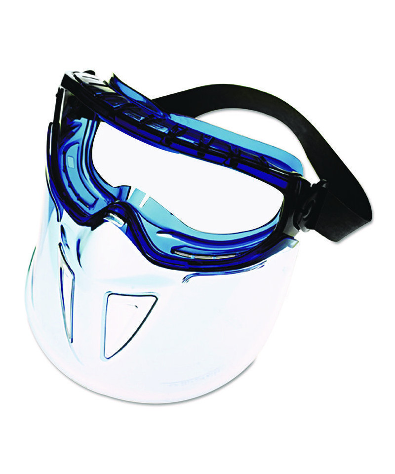 Versatile face shield conforms to the contours of your face to provide effective protection from liquid splashes and light airborne debris. Detachable goggles can be worn separately. Cylindrical lens affords a wide-range view.