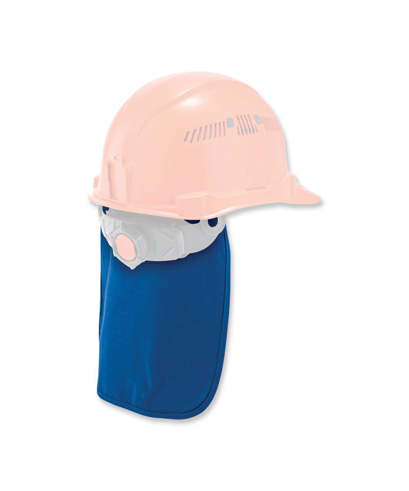 The Chill-Its 6717 Cooling Hard Hat Pad with Neck Shade straps into hard hats to deliver four hours of cooling relief while also shading the neck from sun damage. The low-profile and lightweight liner pad with shade features cooling acrylic polymers for instant cooling without bulk or slime, making it comfortable to wear under hard hats. The wide panel shade extends down for complete back-of-neck-coverage. This hard hat liner pad fits most hard hats and safety helmets, easily attaching to the suspension with two hook and loop straps. Heat-related illness continuously ranks among the top causes of worksite accidents and fatalities. Evaporative cooling technologies such as polymer crystals are a simple, effective and comfortable solution for heat stress prevention.
