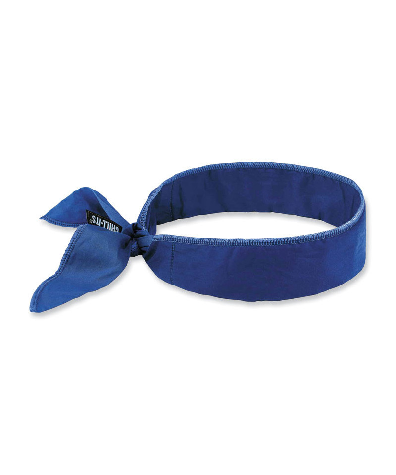 The Chill-Its 6702 Cooling Bandana is an evaporative cooling headband designed to deliver instant cooling relief lasting up to four hours. This lightweight bandana is designed with polymer crystal technology embedded in a batting material for fast cooling. Embedding the polymer crystals reduces uneven expansion of the polymers when wet (less bulk, more comfort). Use the tie-closure to adjust the fit around the head, neck or wrists. Simply soak the cooling headwear in water for 2 to 5 minutes to activate. The water-absorbing polymer crystals inside will plump up slightly and provide a cooling sensation that lasts for hours. The new woven batting material will not become overly saturated and will not ooze or become slimy. Simply flip the cooling bandana over to refresh the cooling sensation. No ice or refrigeration is needed. Hang dry and rewet to activate. Great for construction, landscaping, roofing, or anybody working in the heat.