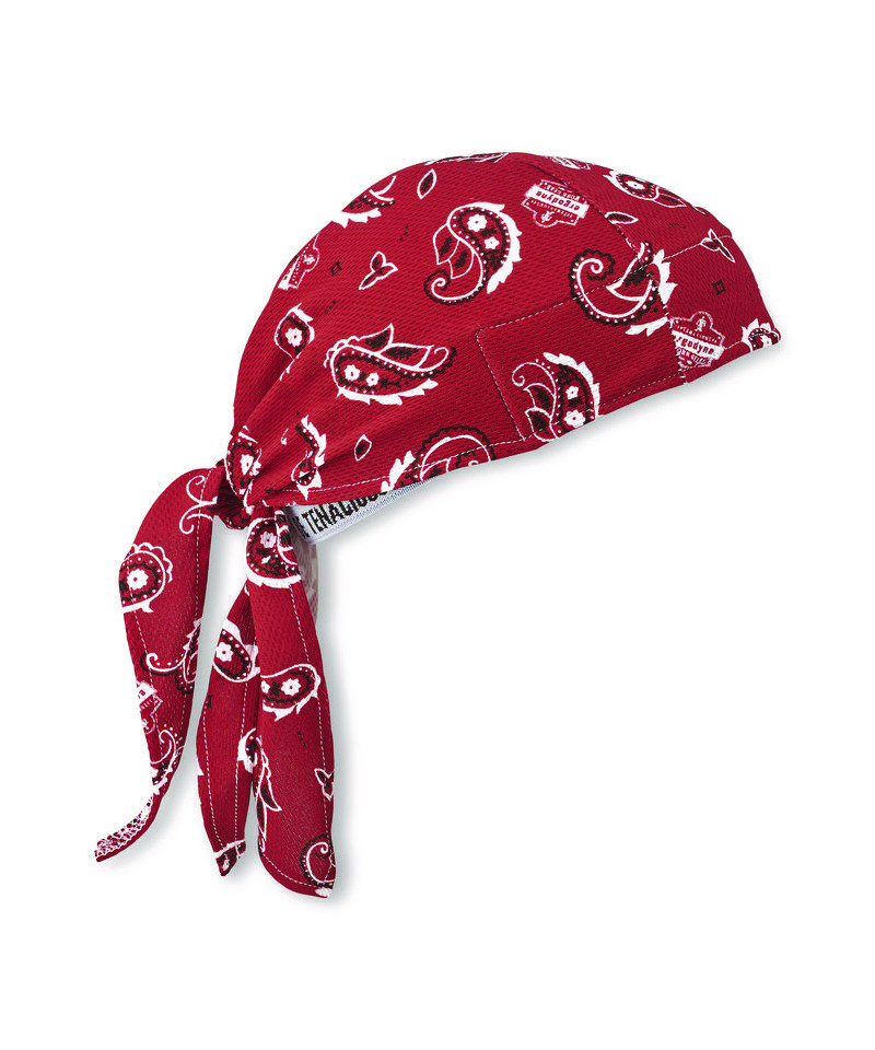 The Chill-Its 6615 High-Performance Bandana Doo Rag with Terry Cloth Sweatband is made with Hi Cool moisture-wicking technology to keep workers comfortably cool and dry on hot days. The Hi Cool performance fabric wicks moisture for quick-drying, while the absorbent terry cloth sweatband prevents sweat from dripping into eyes. This low-profile cooling doo rag can be worn alone or under a hard hat. One size fits most, the back features an elastic band that stretches to comfortably fit a variety of head sizes. To be worn correctly, the three pieces of fabric should also be tied in a knot. Machine wash as needed and hang to dry. Ideal for construction, landscaping, roofing or anyone working in the heat. It is also a great bandana headband for running, hiking and other recreational activities.