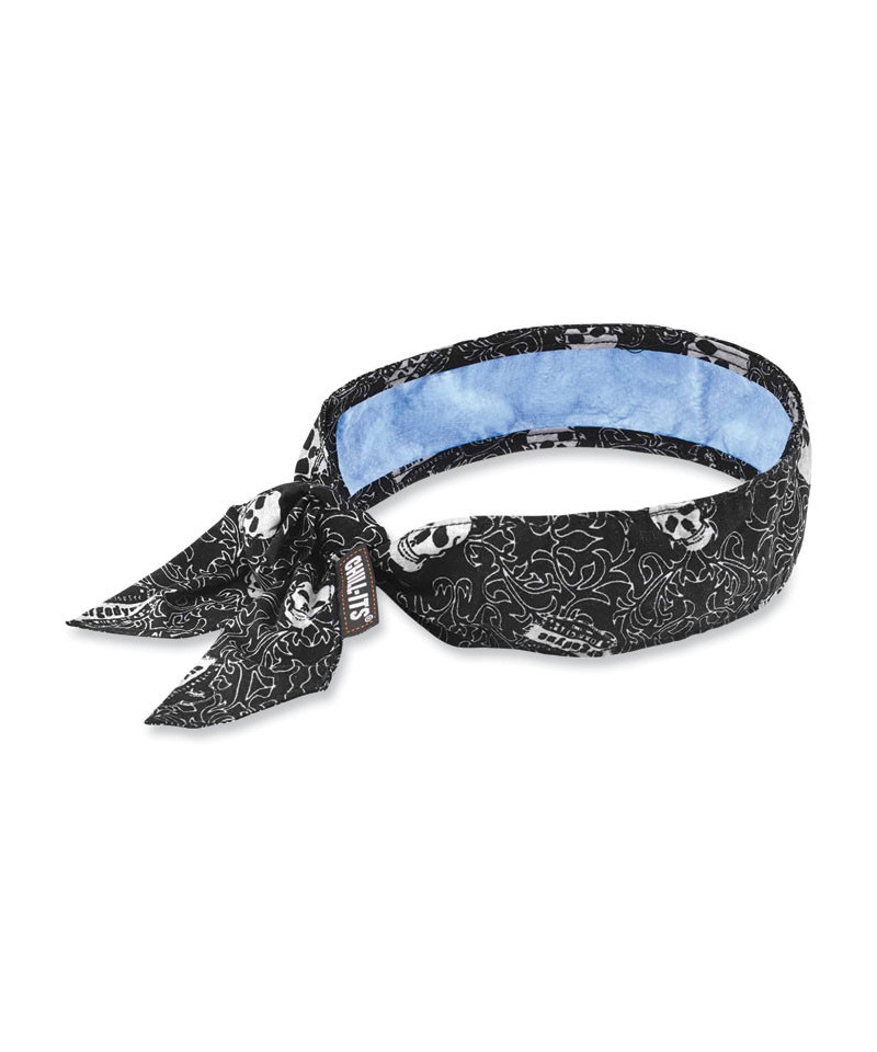 The Chill-Its 6700CT Cooling Bandana features advanced PVA cooling technology for relief in extreme heat. Lightweight and low-profile, this bandana is perfect for wear around the neck or under hard hats. A tie closure in the back makes for an adjustable, snug fit on a variety of head sizes. Heat-related illness continuously ranks among the top causes of worksite accidents and fatalities. Evaporative cooling technologies such as PVA (polyvinyl alcohol) are a simple, effective and comfortable solution for heat stress prevention. Similar to how sweat cools the body, evaporative technologies use an external water source to draw heat away-helping to regulate body temperature while providing cool relief. When activated, this PVA cooling bandana is comfortable and refreshing for even the hottest days of the year.