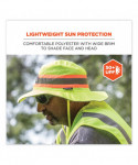 A lightweight and breathable sun protection hat with advanced microfiber cooling technology lining the rim for relief in extreme heat. This 150D polyester sun hat is rated to UPF 50+ and features a wide brim for complete face and head coverage, while 360-degree mesh venting maximizes airflow for breathable comfort. The hi-vis colors and 1" reflective tape are ANSI 107-approved to keep workers safe and seen. Evaporative cooling technologies such as microfiber are a simple, effective and comfortable solution for heat stress prevention. Evaporative technologies use an external water source to draw heat away helping to regulate body temperature while providing cool relief. Run the inside rim of the sun hat under water for one minute to activate instant cooling relief that lasts up to three ho