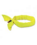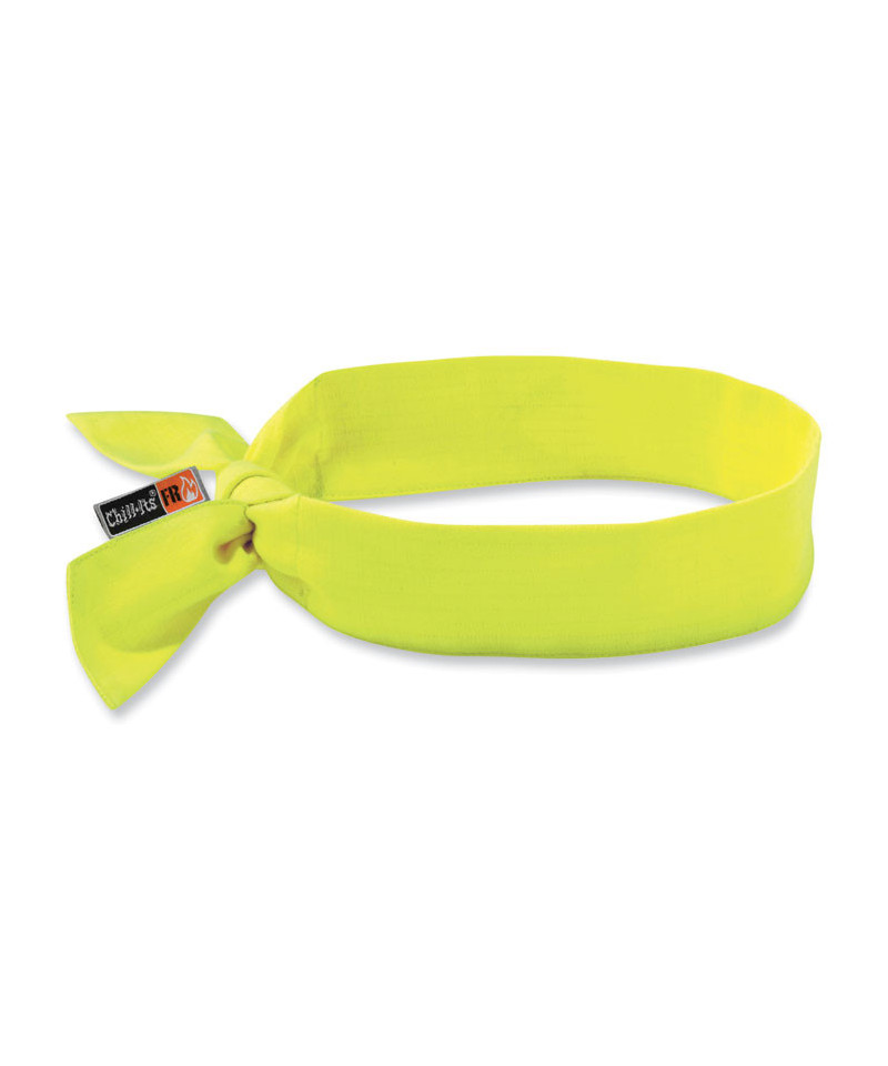 Activated polymers bring cooling relief along with fire resistant protection. Soak in water for 2 to 5 minutes to activate. Remains hydrated for up to four hours. Made of a modacrylic cotton blend fabric.