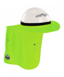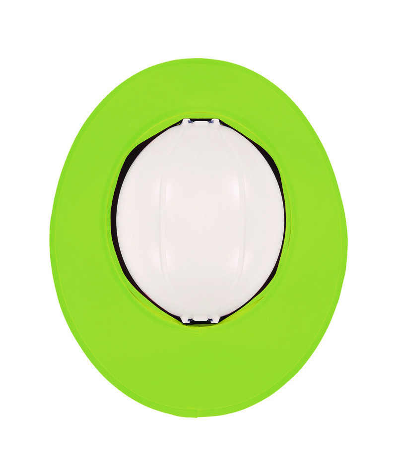 The Chill-Its 6661 Universal Hard Hat Brim with Neck Shade attaches to hard hats and safety helmets to shade the face and neck for protection against sun damage. This flexible full brim shade features a silicone-lined elastic interior to securely grip and attach to most hard hats and safety helmets. A wide panel shade with UPF 50+ protection extends down for complete back-of-neck coverage. For a customized fit, the neck shade can be rolled away and snapped into storage when not in use. A darker tinted underside of the brim helps to reduce excessive glare from the sun. Hi-vis color to keep workers safe and seen. Hand wash as needed and hang to dry. Ideal for those working in sunny environments where shade is needed when wearing hard hats or safety helmets, including construction, roofing and landscaping.