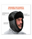 The N-Ferno 6802Z Zippered Trapper Hat provides warmth from extreme cold, as well as the option for lightweight protection from bumps, scrapes, bruises and other minor head injuries. Wear alone as a classic aviator hat or open the top zippered compartment to add the 8945 Universal Bump Cap Insert (sold separately) for work in cramped spaces. This trapper hat features a windproof and water-resistant oxford nylon shell lined with 40 grams of 3M Thinsulate Insulation for comfortable warmth in extreme conditions. A water-resistant crown lining prevents sweat or moisture from being absorbed into the lining to keep you dry and warm. Ear flaps can be buttoned up for improved hearing through the small ear holes or down for increased warmth. A chin strap with YKK buckle makes for an adjustable fit, and a reflective accent on the back keeps workers safe and seen.