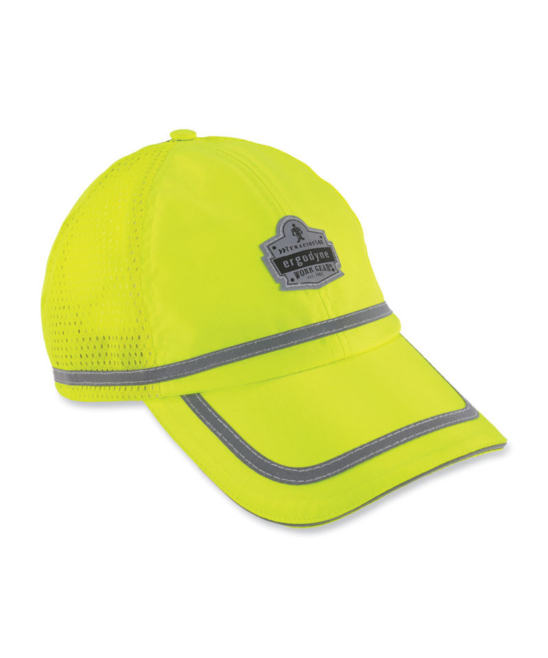 The GloWear 8930 Hi-Vis Baseball Cap is made of a lightweight ANSI 107-approved 150D fluorescent Oxford polyester with mesh venting panels for breathable comfort. This hi-vis hat features a reflective logo and 0.25 reflective trim around the cap and brim for enhanced low-light visibility. When worn as an accessory with hi-vis clothing, this hat will enhance worker safety and visibility. This high visibility baseball hat is ideal for those working in road construction, transportation, baggage handling, municipalities or around moving vehicles. It's also great for outdoor recreational activities where you need to be seen, such as running or biking.