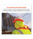 The hi-vis neck shade stretches around hard hat brims to provide breathable neck and ear protection from sun damage. Made with ANSI 107-approved polyester mesh and reflective, it enhances worker safety and visibility when worn as an accessory with other hi-vis clothing. The elastic design of this hard hat neck shade stretches to fit most standard and full brim hard hats and safety helmets, with additional plastic clips on the inside for stay-in-place security. This high-visibility neck shade is ideal for those wearing head protection while working in road construction, transportation, municipalities and more.