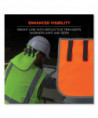 The GloWear 8006 Hi-Vis Hard Hat Neck Shade straps into hard hats to provide full back-of-neck protection from sun damage. Made with ANSI 107-approved polyester fabric and reflective trim, it enhances worker safety and visibility when worn as an accessory with other hi-vis clothing. This hard hat neck shade fits most hard hats and safety helmets, easily and securely attaching to the suspension with two hook and loop closures. This high-visibility neck shade is deal for those wearing head protection while working in road construction, transportation, municipalities and more.