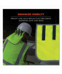 The GloWear 8006 Hi-Vis Hard Hat Neck Shade straps into hard hats to provide full back-of-neck protection from sun damage. Made with ANSI 107-approved polyester fabric and reflective trim, it enhances worker safety and visibility when worn as an accessory with other hi-vis clothing. This hard hat neck shade fits most hard hats and safety helmets, easily and securely attaching to the suspension with two hook and loop closures. This high-visibility neck shade is deal for those wearing head protection while working in road construction, transportation, municipalities and more.