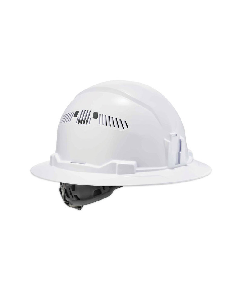 The Skullerz 8973 Class C Full Brim Hard Hat is heavy-duty yet lightweight and comfortable head protection built to protect the top of the head from falling objects or bumping into stationary objects. A padded, moisture-wicking and odor-resistant sweatband and top pad lines the sides, forehead and top interior and is removable for easy replacement. This full-brim style helps keeps rain away from the eyes and provides extra protection against falling or flying debris. Also offers all-around protection from the sun, humidity and heat. The open frame design with the adjustable venting offers a cooler hard hat in the heat and a dry hard hat in the rain. This safety helmet fits hat sizes 6.5 to 8 (21 in to 25 in). Customize the size and balance with the easy-to-adjust 4-point premium ratcheting suspension.