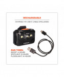 This rechargeable hard hat light easily attaches directly to any Skullerz® Hard Hat or Safety Helmet light mount. It simply slides and clips into the front or rear built-in mounts without the need for clunky straps or clamps. This portable headlamp features a built-in magnet on the back for securely attaching the light to metal on the worksite or for storing when not attached to a hard hat or helmet. Simply detach from the built-in mounting bracket to use as a flashlight/work light or to charge. This rechargeable hard hat light features a slim profile and a five-position tilt head design for visibility where you need it most. A one-button switch supports three working modes: boost (all-on), spotlight and floodlight. Boost (300 lumens for 4 hours) is for maximum light, spotlight (215 lumens for 9 hours) is for tight-beam long distance visibility and floodlight.