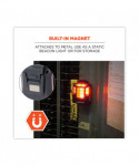 This hard hat safety light easily attaches directly to any Skullerz® Hard Hat or Safety Helmet light mount for use as a beacon light. When clipped to the back built-in mount, it will throw red light in four directions to keep workers visible and safe from far distances in low-light conditions. It features a built-in magnet on the back for securely attaching the light to metal on the worksite or for storing when not attached to a hard hat or helmet. Simply detach from the built-in mounting bracket to use as a portable beacon light or to charge. Designed for the utmost safety and visibility in a variety of environments, this safety light has four working modes: high or high pulse for maximum light (22 lumens for 5 hours on high, 10 hours on high pulse) and low or low pulse for maximum life (4.9 lumens for 22 hours on low, 52 hours on low pulse). A one-button switch makes for easy switching between modes.