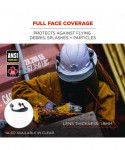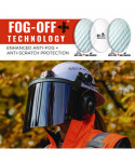 The Skullerz 8995 Anti-Scratch & Anti-Fog Hard Hat Face Shield is designed to increase eye and face protection for those using Skullerz Cap-Style Hard Hats or Safety Helmets. This face shield protects against flying debris and splashes and features a performance anti-fog and anti-scratch protective lens that will not wash or wear off over time. The shield features Fog-Off+ technology for durable scratch-resistance and enhanced permanent anti-fog performance that won't wash or rub off for clear viewing no matter the job-particularly useful for those working with dust masks or with extremely variable temperature. UV protection filters 99.9 percent of harmful UVA, UVB and UVC rays to keep eyes safe in the sun. The face shield is removable and replacement shields are sold separately. Integrated accessory slot allows Skullerz Earmuffs to be worn while face shield is in use. Safety glasses and headlamp can be worn while in use.