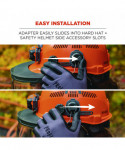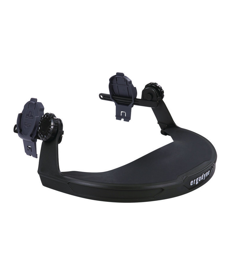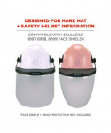 The Skullerz 8996 Face Shield Adapter Frame Replacement securely attaches to Skullerz Hard Hat and Safety Helmet side accessory slots and accepts 8997 Cap-Style Hard Hat & Safety Helmet Face Shields, 8998 Full Brim Hard Hat Face Shields and 8999 Mesh Face Shield Replacements for full face protection on the jobsite. When securely installed, this safety face shield has three pivoting positions-fully down to provide full face protection, mid-way, or fully up and out of the way. The adapter can be adjusted forward or backward to accommodate other hard hat accessories such as headlamps. Integrated accessory slots on the face shield adapter allow users to attach Skullerz Earmuffs when face shield is installed and in use.