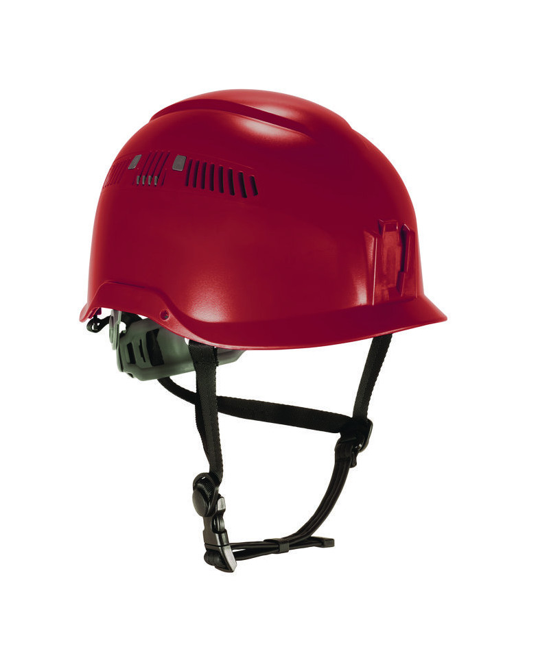 With a 6-point suspension and an EPS foam interior halo for all-around impact protection, this helmet provides heavy-duty, yet lightweight and comfortable head protection designed to shield the front, back, top and sides of the head from falls, dropped objects or bumping into stationary objects. Compared to 4-Point suspension systems, the 6-Point suspension better disperses the force of an impact. The compact helmet design improves visibility and a chin strap ensures the helmet remains secure to the wearer's head upon impact or during sudden movement such as a slip, trip or fall.