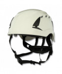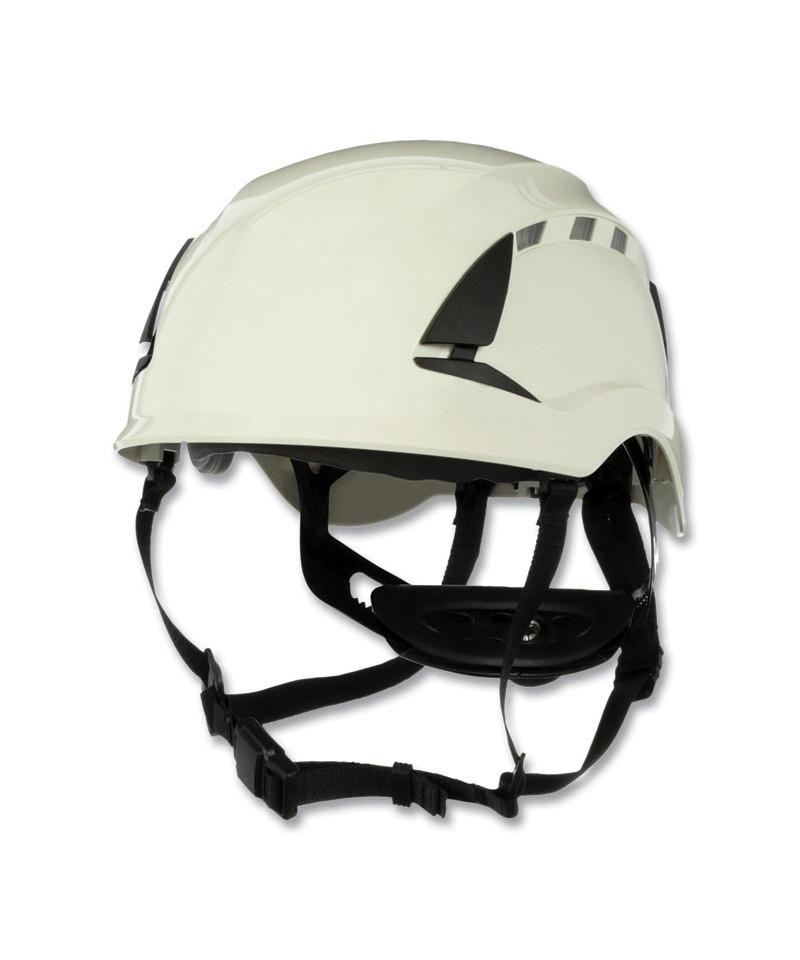 3M™ SecureFit™ X5000 Series Safety Helmets provide workers with a comfortable, secure fit that's ideal for a variety of applications. Climbing helmet-inspired, brimless design with chin strap meets occupational safety requirements while helping the wearer maintain greater situational awareness by delivering an obstruction-free field of vision. Low-sitting suspension system minimizes pressure to the head, while its exclusive, patented Pressure Diffusion Technology allows the system to self-adjust to the wearer as the smooth, easy-turning ratchet is tightened. Multiple levels of height and head-shape adjustments allow the wearer to customize the fit even further. X5000 Series helmets meet ANSI safety compliance standards and are designed to protect the wearer's head from small falling objects. All helmets are compatible with a variety of 3M™ face-shields, earmuffs and additional accessories (all sold separately).
