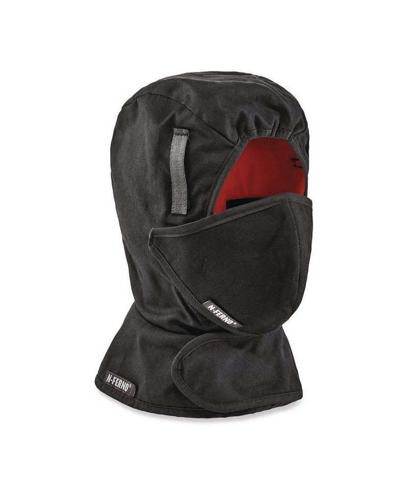 The N-Ferno 6871 2-Layer Winter Hard Hat Liner with Mouthpiece Kit includes a winter hard hat liner with two layers of insulation and a thermal mouthpiece attachment for full-face coverage. The lightweight thermal liner is shoulder-length to keep head, ears and neck covered and fits comfortably under helmets or hard hats without feeling too bulky. Both the N-Ferno 6852 Hard Hat Thermal Liner and the N-Ferno 6870 Thermal Mouthpiece have a breathable 100% cotton twill outer shell and a soft 100% polyester fleece lining for added comfort and to stand up to tough environments. There are four hook and loop straps on the exterior of the liner designed to securely attach to the interior of a hard hat for versatile protection in extreme work environments. This hard hat winter liner contains pockets by the ears designed to hold regular-sized hand warmers (sold separately) to keep ears warm and comfortable in extreme temperatures.